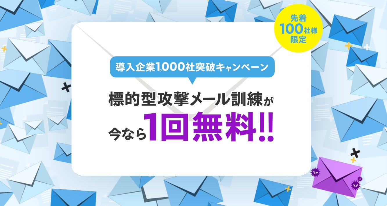 情報セキュリティ向上クラウド「Seculio」の導入実績が1,000社を突破したのを記念し、Seculioの人気機能である標的型攻撃メール訓練機能を1回無料で使えるキャンペーンの提供を開始しました。