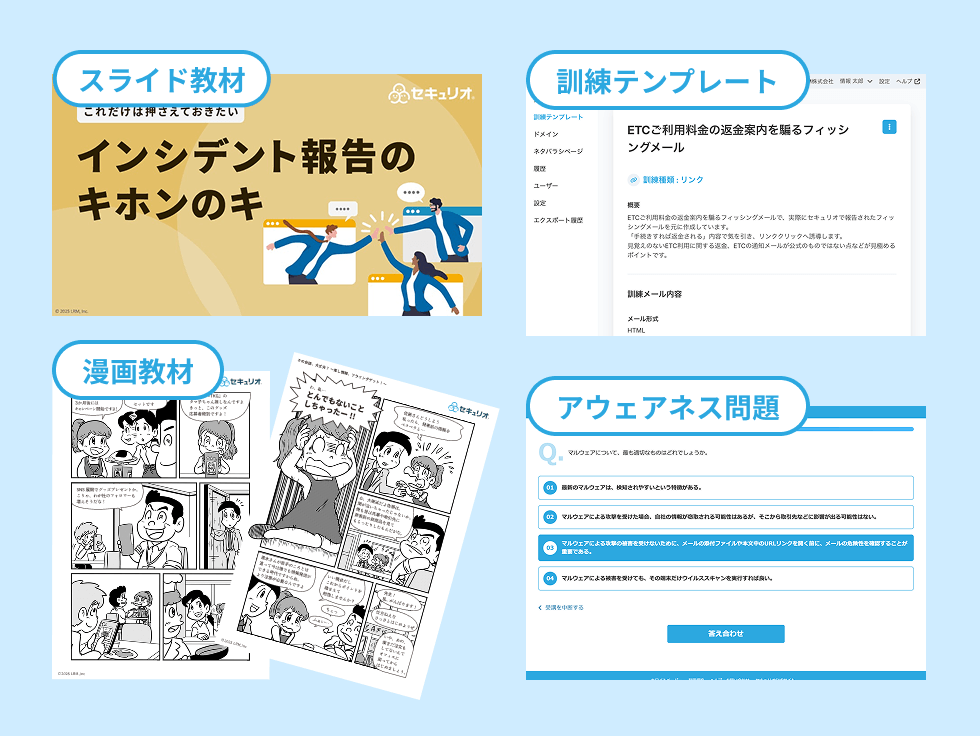 - 最新の情勢に合わせて教育コンテンツを毎月追加&アップデート