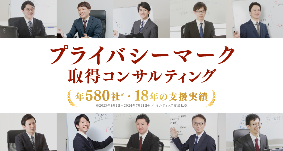 取得率100%! 安心のPマーク取得コンサルについてはこちら!