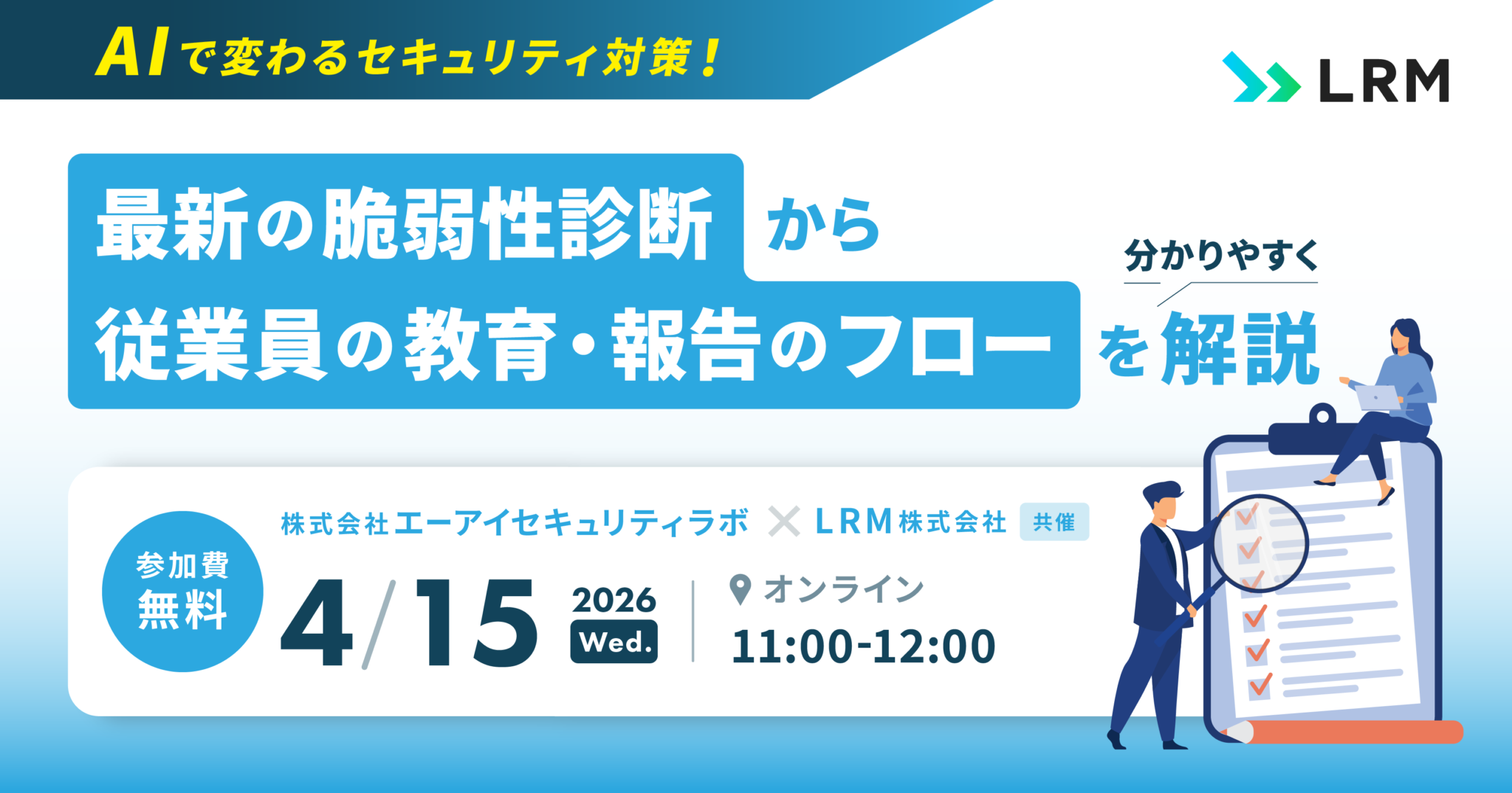 セミナー・イベント 2026年4月15日「AIで変わるセキュリティ対策!最新の脆弱性診断から従業員の教育・報告のフローを分かりやすく解説」を開催します