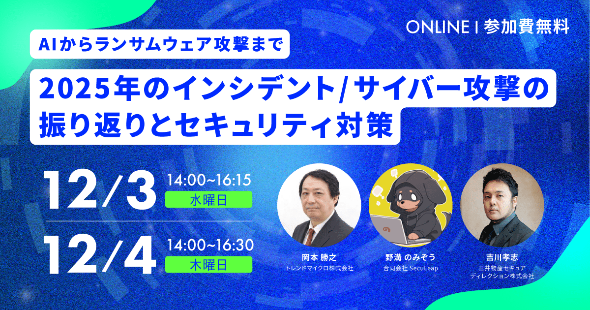 2025年8月27日に開催した「2025年上期のサイバー攻撃やインシデントの総括と対策」の見逃し配信!